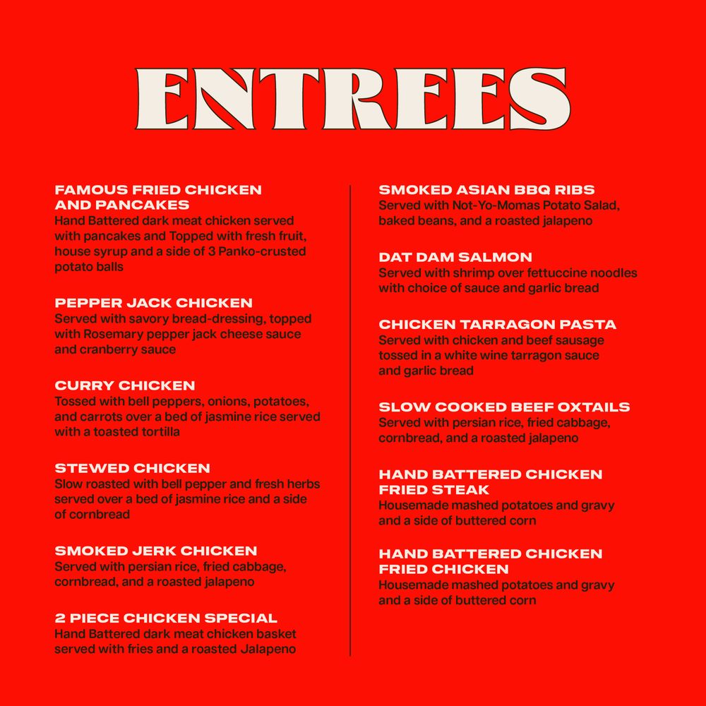 Served with persian rice, fried cabbage, cornbread, and a roasted jalapeno